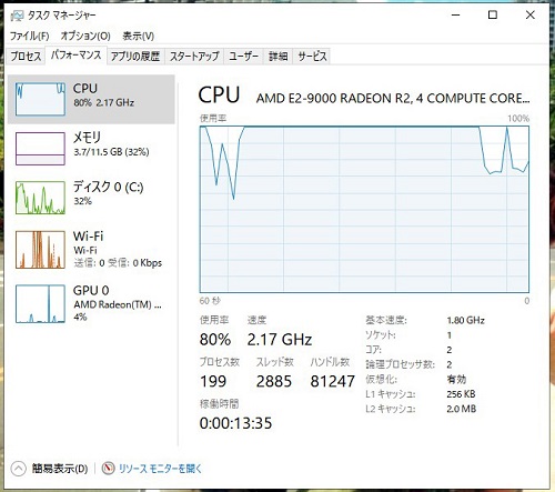 私的にはCore i 3程度あればいいかなと思ってたので申し分ない!