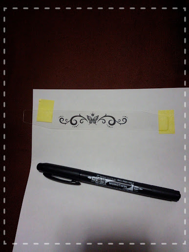 そして、切ったプラ板と絵を重ねズレないようにマステで止めて、