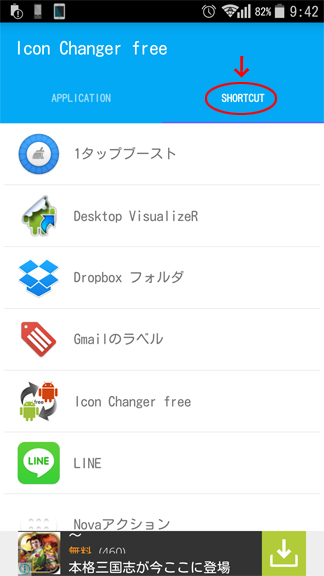 SHORTCUTタブをタップします。
