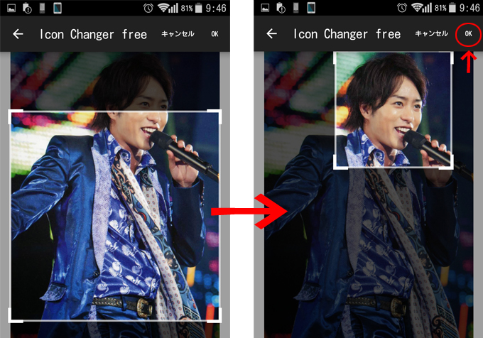 B④.ここでアイコンに使用したい部分を選択し、OKをタップします。