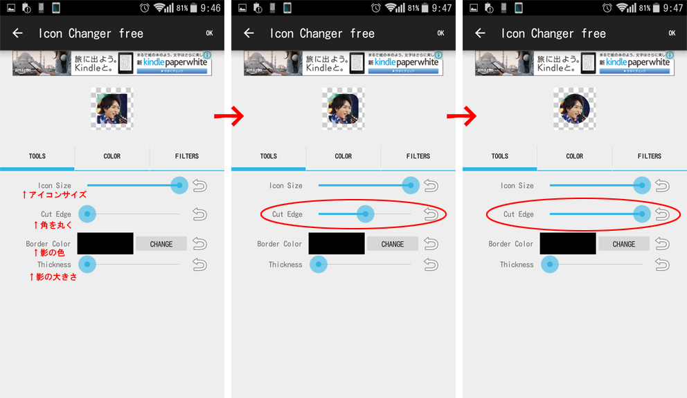 “自分で作った画像をアイコンに使いたい!”と探して見つけたのがこのアプリ。