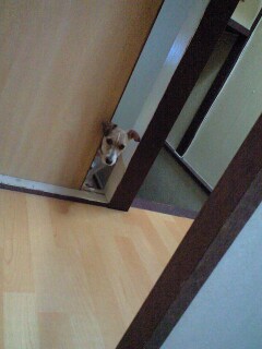 ワシの部屋で尻尾振ってるモモちゃん。(尻尾見える?)