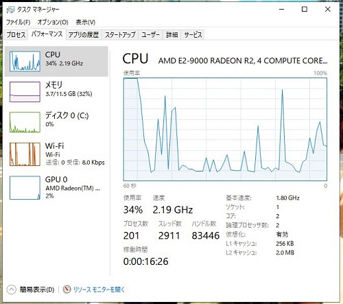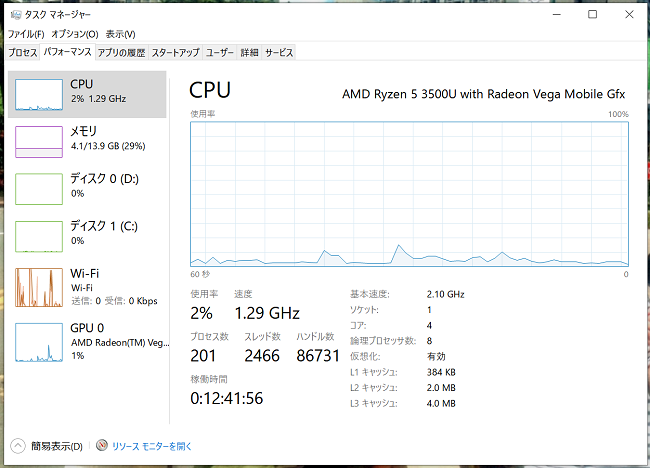 私的にはCore i 3程度あればいいかなと思ってたので申し分ない!