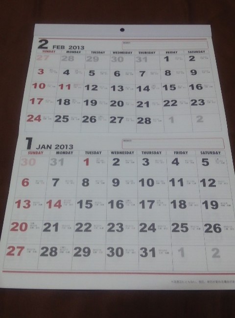 なんか前にも書いた気がするけど、毎年同じ形のカレンダー購入してます。