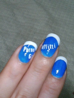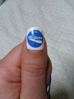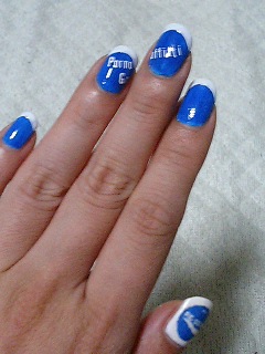 で、親指だけ白ネイルにして文字数の少ない